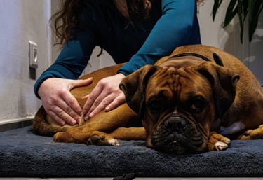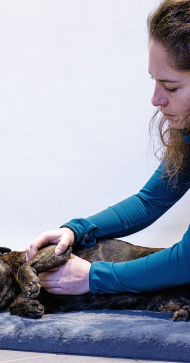 Chaque séance est adaptée à l'état, à l'âge et aux besoins spécifiques de votre chien. Elle est initiée par une évaluation complète, incluant son historique, une évaluation palpatoire, fonctionnelle, statique et dynamique, pour déceler les possibles faiblesses et restriction de mouvements.