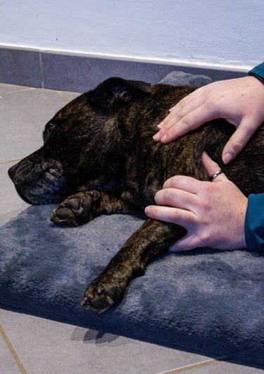Un massage complet est réalisé avec pour objectif un relâchement profond de votre chien et un travail sur les muscles présentant des raideurs/restrictions. En fonction des besoins, des mobilisations ou des étirements peuvent être réalisés à l'issue de la séance.