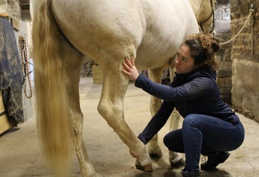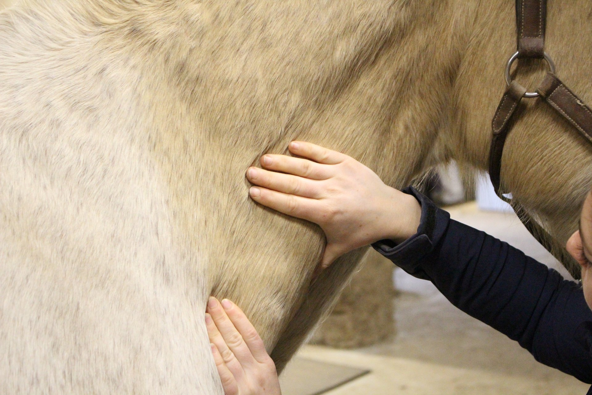 Après l'effort : séance de massage visant à faciliter la récupération du votre cheval, en stimulant le drainage lymphatique (élimination des déchets métaboliques), et à abaisser le tonus musculaire pour prévenir l'arrivée de courbatures, grâce à des techniques de massage relaxantes et un stretching des différents muscles sollicités.