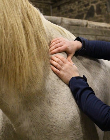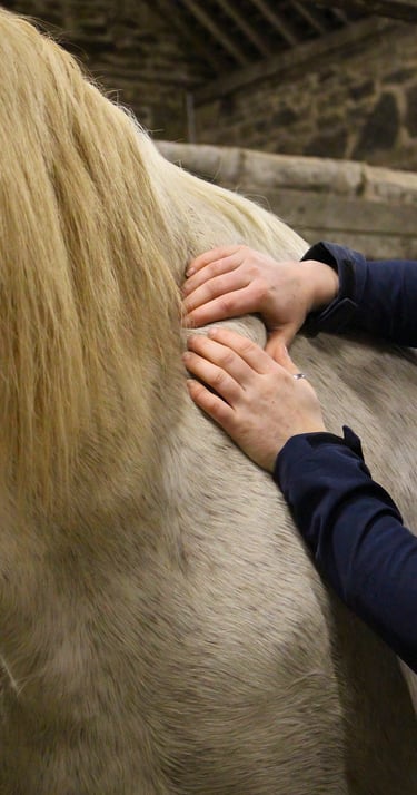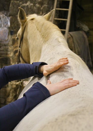 Chaque séance est adaptée à l'état, à l'âge et aux besoins spécifiques de votre cheval. Elle est initiée par une évaluation complète, incluant son historique, une évaluation palpatoire, fonctionnelle, statique et dynamique, pour déceler les possibles faiblesses et restriction de mouvements.